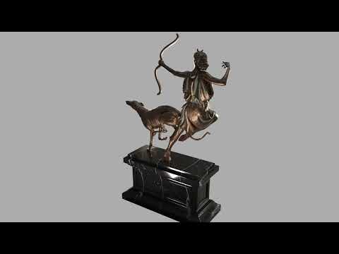 Nous avons recréé une sculpture en bronze subtilement oxydé, jouant sur les nuances de vert-de-gris pour évoquer le passage du temps. La statue repose sur un socle en marbre noir, dont les veines profondes et les reflets polis contrastent élégamment avec la patine du métal. Un travail minutieux de shading et de lighting a été réalisé pour sublimer chaque détail et offrir un rendu fidèle aux matériaux nobles de la sculpture originale.